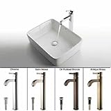 C-KCV-121-1007SN Finish: Satin Nickel Pictured in chrome Features: -Ramus faucet is constructed from solid brass. -Available in chrome, satin nickel, antique brass and oil rubbed bronze finishes. -High-quality ceramic cartridge. -Single-hole, top-mount installation. -Single lever water and temperature control. -Standard US plumbing connections. -All mounting hardware and hot / cold waterlines are included. -Resistant to stains and easily cleaned and maintained. -Smooth non-porous surface, prevents from discoloration and fading. -Designed for above counter installation with standard US plumbing connections. -Solid brass umbrella pop-up drain is included in the same finish as the faucet. -ADA compliant. -Five Years Limited Manufacturer Warranty. Specifications: -Height: 5.28''. -Width: 15.2''. -Depth: 19.2''. -1.75'' standard drain opening. -Faucet Height: 12.5'' (13.5'' when a lever is opened). -Spout Height: 8.5''. -Spout Reach: 5.5''.